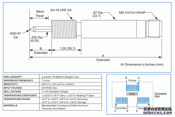 美國Trans-Tek 310-320位移傳感器尺寸:aNC廣州南創電子科技有限公司