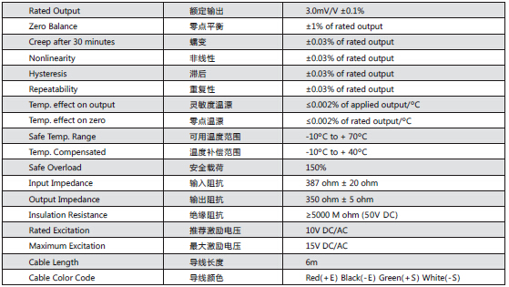美國Transcell BSS系列稱重傳感器所有量程如下: 7kG廣州南創電子科技有限公司