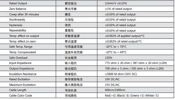 美國Transcell DBSL系列稱重傳感器所有量程如下: GIm廣州南創電子科技有限公司