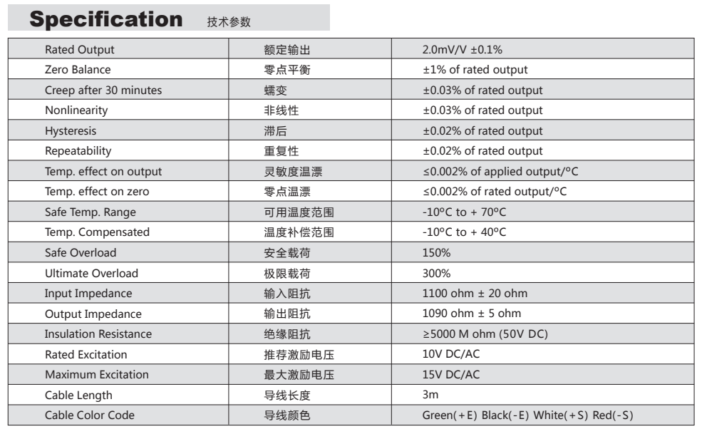 Ut0廣州南創(chuàng)電子科技有限公司美國傳力Transcell稱重傳感器TA-50kg技術(shù)參數(shù)圖:Ut0廣州南創(chuàng)電子科技有限公司