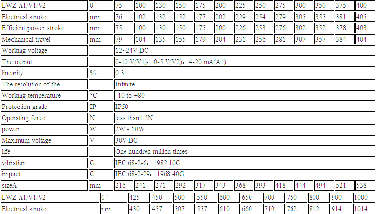 滑塊式位移傳感器LWZ-A1/V1/V2