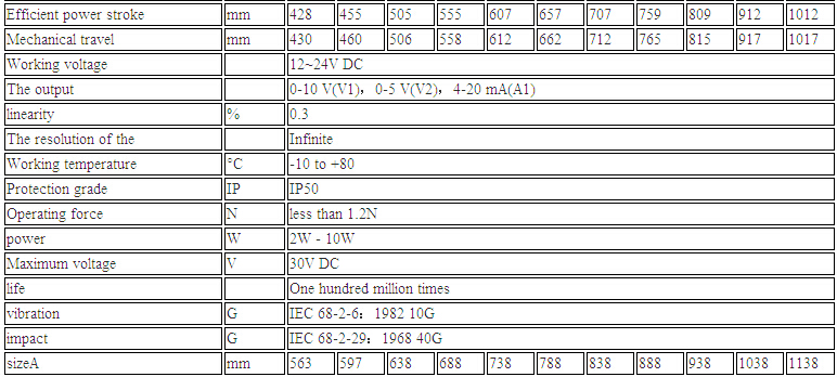 與德國VOLFA LWZ系列直線位移傳感器同一系列不同量程型號:
