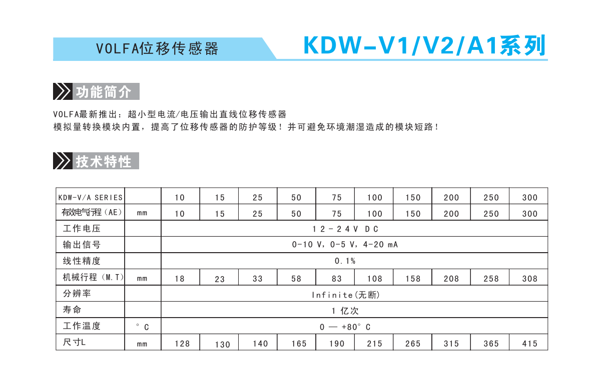 KDW-25-R5 Volfa位移傳感器型號類別技術參數選型安裝等資料信息,如果有關