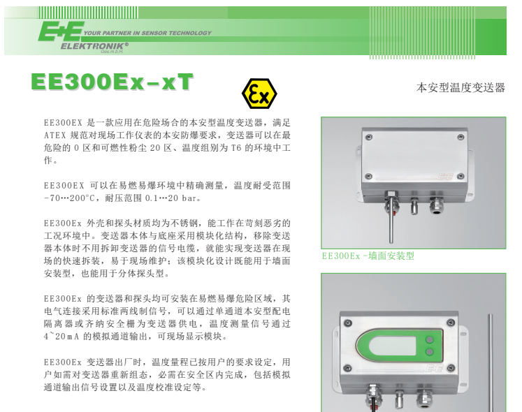 奧地利E+E全系列溫濕度傳感器,EE300EX本安溫濕度傳感器應用于石化行業、制藥工業、化工行業、煤炭化工、糧油加工、電力行業、 電子工業汽車工業。