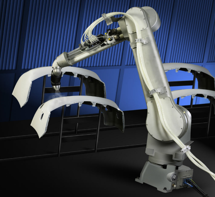 噴涂機器人又叫噴漆機器, 是可進行自動噴漆或噴涂其他涂料的工業機器人。噴漆機器人主要由機器人本體、計算機和相應的控制系統組成,機體多采用5或6自由度關節式結構,手臂有較大的運動空間,并可做復雜的軌跡運動,其腕部一般有2~3個自由度,可靈活運動,完成各種復雜的噴涂工作。噴漆機器人一般采用液壓驅動,具有動作速度快、防爆性能好等特點。由于噴漆機器人相對人工噴漆來說效率高、效果好、利用率高等優點。因此被廣泛用于汽車、儀表、電器、搪瓷等工藝生產部門。