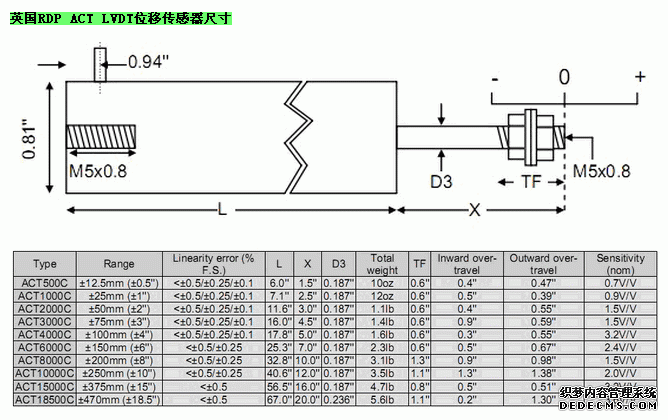 英國RDP ACT LVDT位移傳感器技術參數圖:YkH廣州南創電子科技有限公司