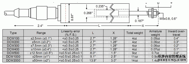 英國RDP DCW LVDT位移傳感器產品尺寸圖:OTE廣州南創電子科技有限公司