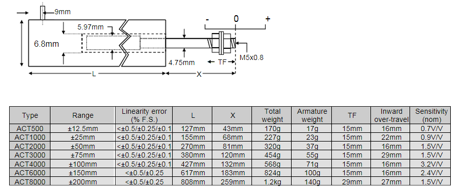 英國RDP ACT15000C位移傳感器系列位移傳感器所有量程如下: