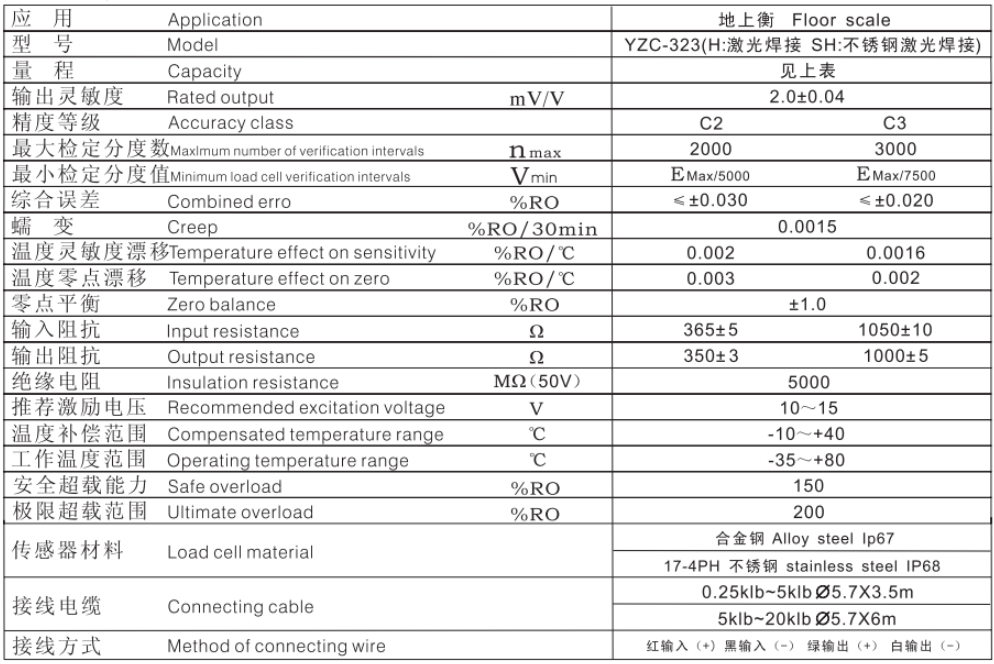 QPp廣州南創(chuàng)電子科技有限公司廣測GUANGCE YZC稱重傳感器技術參數(shù)圖: